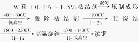 高溫燒結鎢骨架法的典型工藝如下: